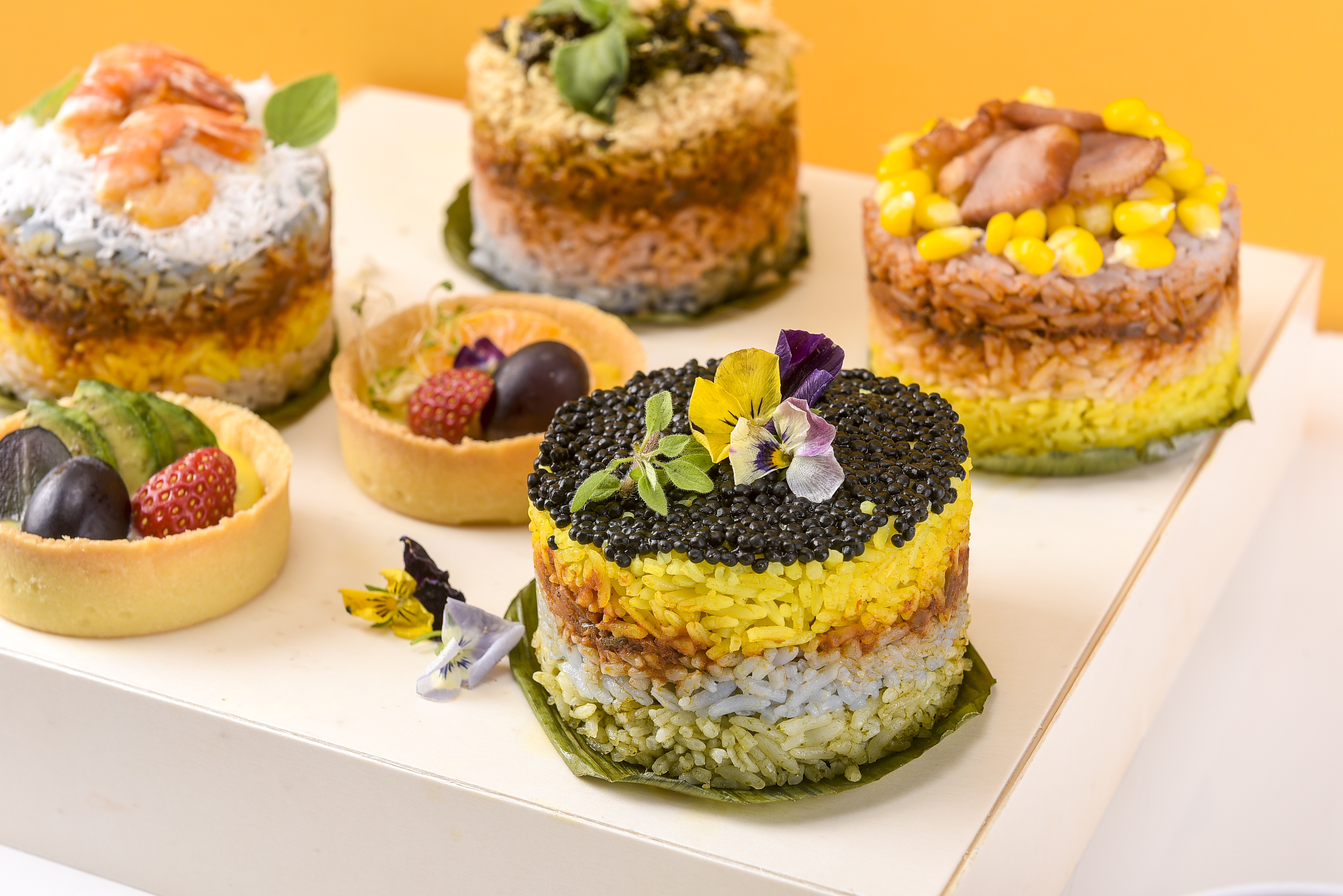 This appetiser box is sweet as an awesome tea-time snack for us to appreciate the Malaysian uniqueness. It is a set of Nasi Lemak Mini-Cakes topped with some special items like Avruga Caviar, Sambal Shrimp, Pan-Fried Salmon, and Pan-Fried Smoke Duck.
